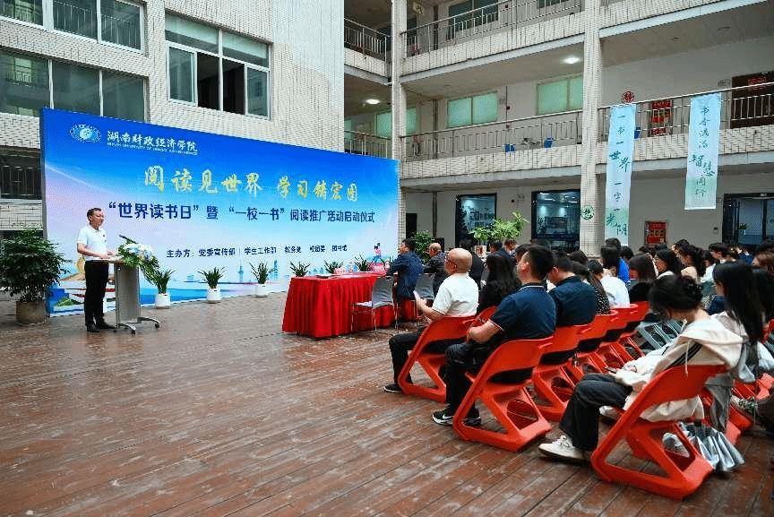 潘爱民在致辞中表示,作为一所办学近百年的财经院校,深知阅读对专业素养和人文情怀的双重滋养。从经济学典籍中汲取智慧,在文学佳作里感悟人生,这正是我们倡导"一校一书"的初心。他强调,作为财经人,既要读懂数据背后的规律,也要理解人性深处的共鸣;既要掌握专业的分析方法,也要培养开阔的人文视野。希望各职能部门、二级学院要以此活动为契机,把“阅读见世界 学习铸宏图”读书系列活动作为深入学习贯彻习近平文化思想,贯彻落实全国、全省教育大会精神,深入开展全民阅读行动,持续推进书香校园建设,大力传承中华优秀传统文化,助力提升我校人才培养质量,促进Beat365高质量发展,认真做好宣传发动和组织领导工作,积极搭建平台,创新活动形式,广泛调动全校师生参与活动的积极性、主动性。广大师生要以财经人的敏锐,在阅读中捕捉时代发展的密码;以读书人的襟怀,在经典中涵养"为天地立心"的担当;以"一校一书",延伸为人生路上的"一生一书"。