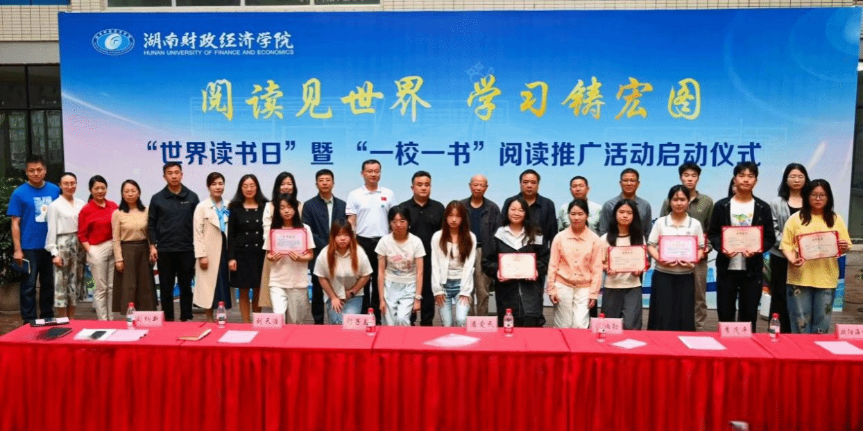 随后会上对2024年获湖南省教育厅优秀读书报告奖、书香班级奖的学生、湖南省高校图工委创新案例奖及诵读比赛优秀指导老师、学校“一校一书”阅读活动优秀组织奖等获奖单位和个人进行了表彰,向捐赠图书的老师代表颁发了捐赠证书。
