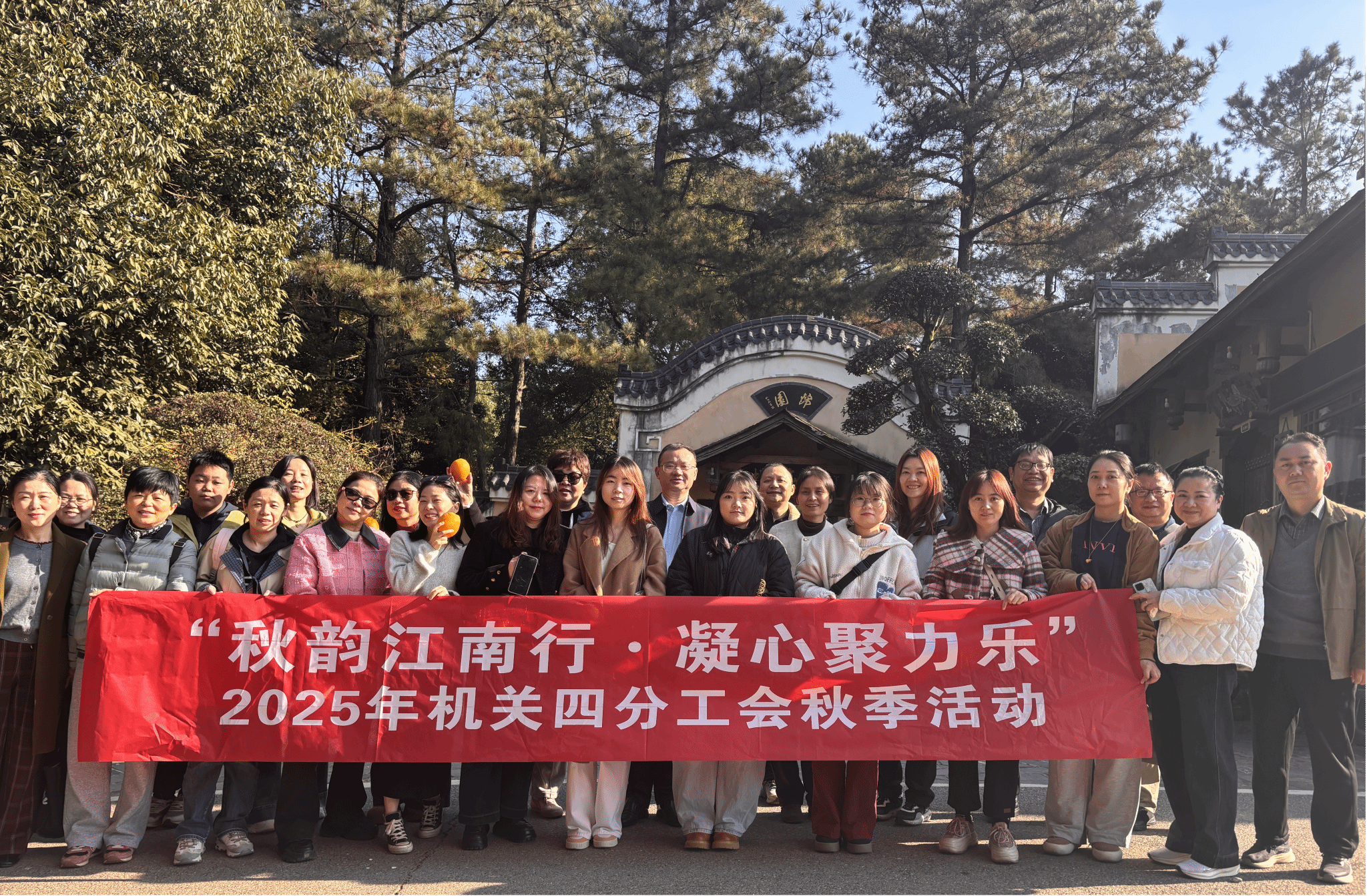 为丰富会员业余生活,增进团队凝聚力与协作力,让大家在繁忙工作之余感受秋季自然之美与集体温暖,11月22日,机关四分工会组织全体会员前往锦绣江南园林度假庄园,开展以“秋韵江南行·凝心聚力乐”为主题的秋季团建活动。