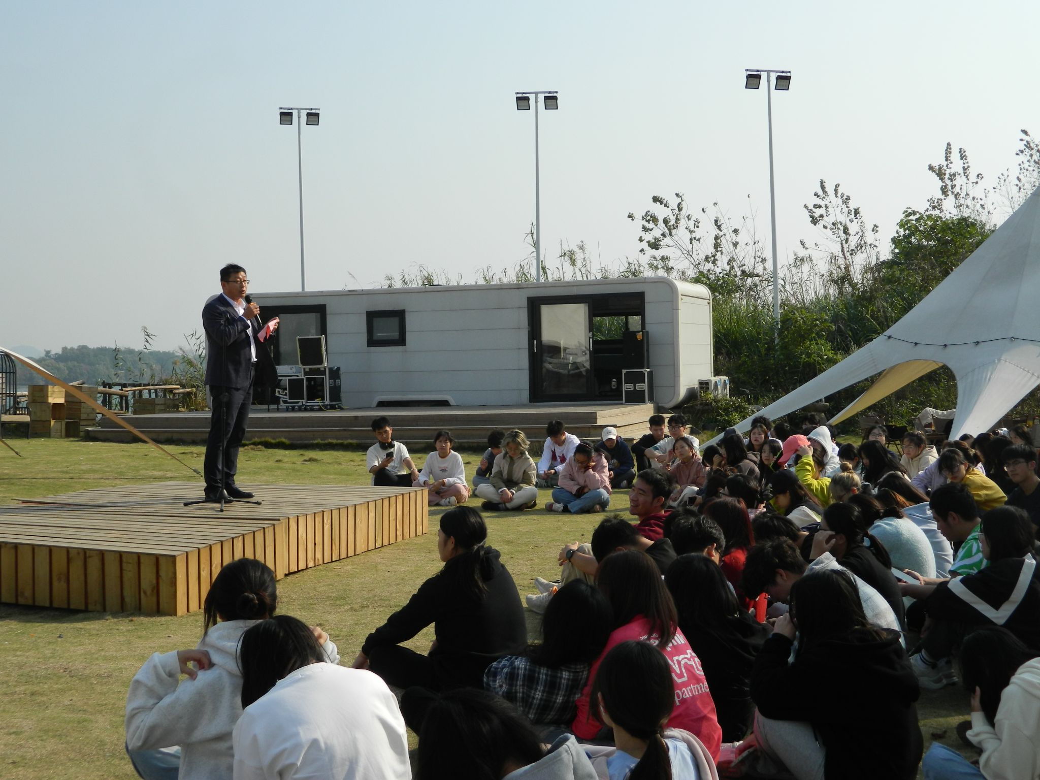(本网讯)为充分发挥实践教学在人才培养中的作用,强化学生专业认知,11月29日,体育学院直属支部副书记李映泉、副院长齐立斌带领2023级体育经济与管理和休闲体育专业180余名师生前往鹅洲岛花园房车营地开展了专业认知实践活动。