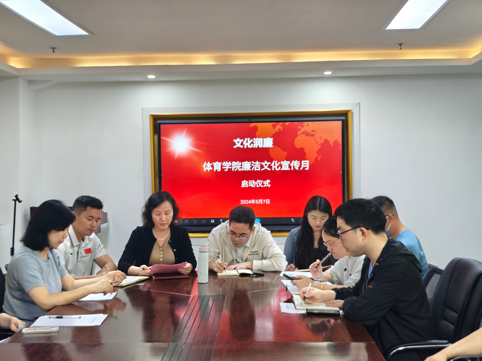 (本网讯)5月7日,体育学院在体育馆237开展主题为“文化润廉”体育学院廉洁文化主题月活动启动仪式。仪式由院长刘伟主持,体育学院教师及学生干部参与此项活动。