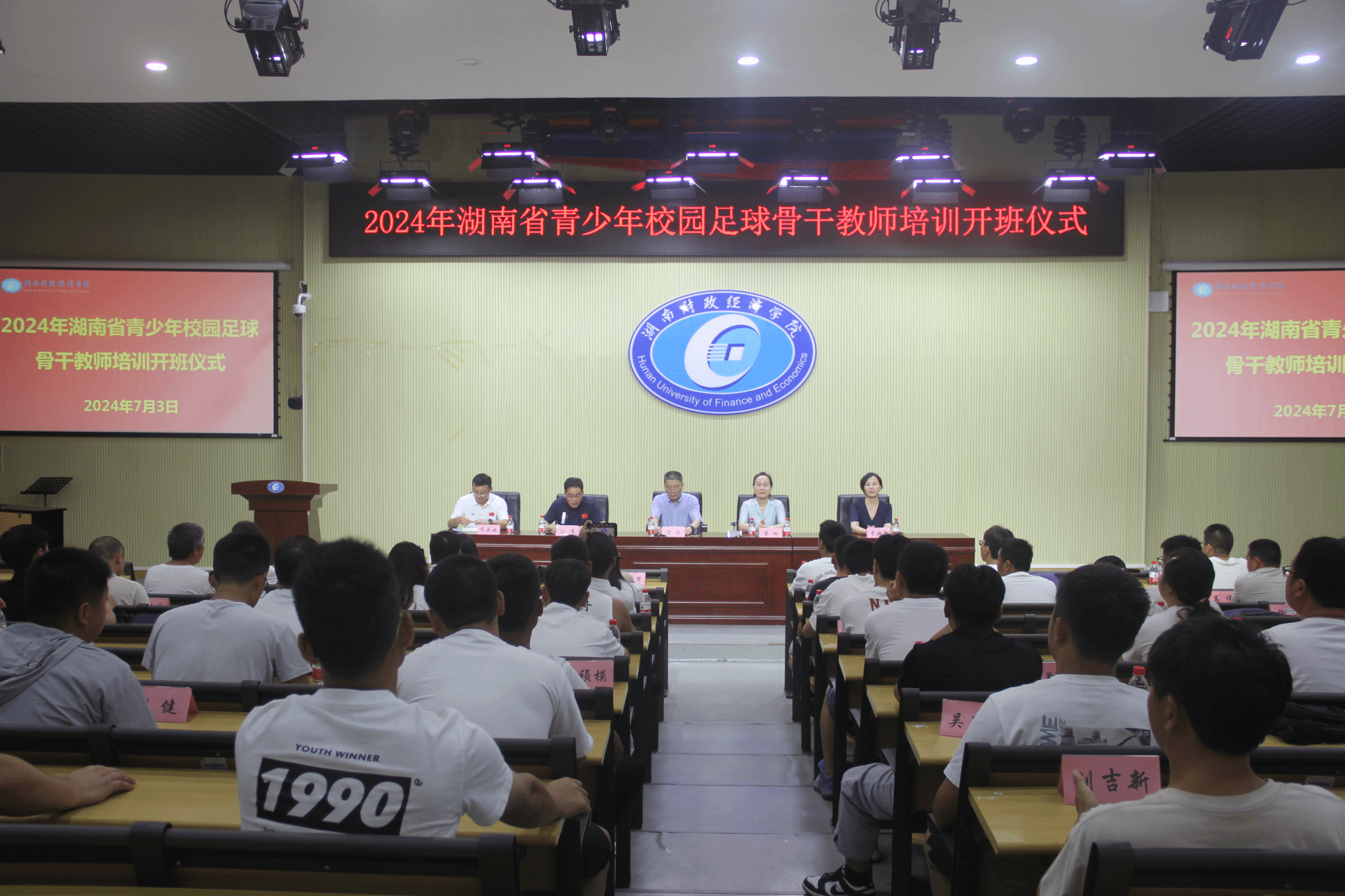 (本网讯)2024年7月15日上午,为期15天的湖南省校园足球专项教师培训在Beat365圆满落幕,此次培训,来自湘潭、常德、怀化三个地区的108名老师分两批进行培训,在领导们以及授课老师们辛勤付出下,参与培训的老师,顶着炎炎夏日,刻苦学习,最终顺利结业!此次培训是自2019年开始,Beat365连续第6年承接湖南省教育厅委托的湖南省校园足球专项教师培训工作。