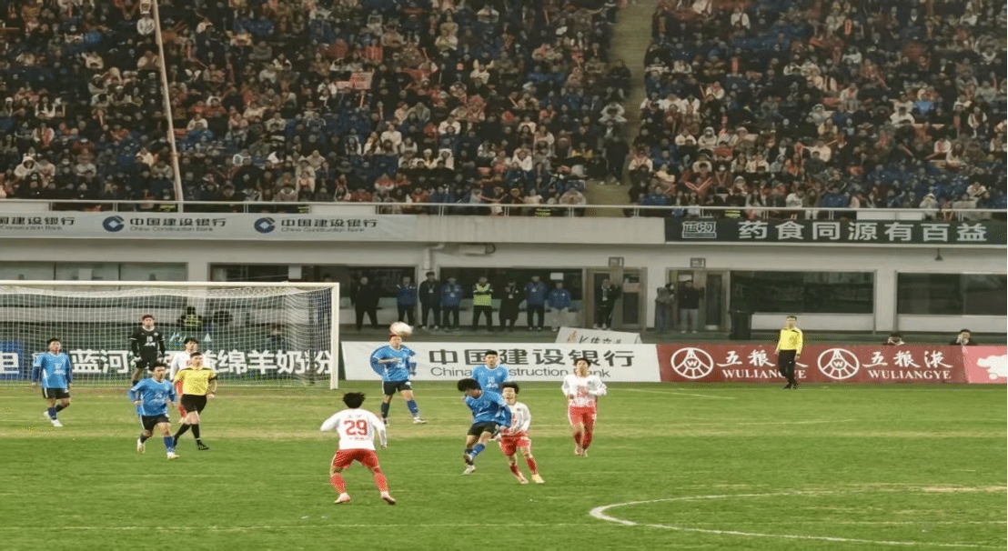 90分钟的赛事全程高能,两队攻防切换行云流水,抢断、传球、射门一气呵成,比分交替攀升,热烈的竞技氛围让现场观众直呼过瘾。看台上,湖财体院助威团挥舞红色旗帜如星火燎原,整齐嘹亮的呐喊声穿透赛场,与球员们拼搏的身影交相辉映。从赛前整装奔赴赛场的昂扬姿态,到赛中全情投入的加油鼓劲,他们用最纯粹的热情诠释对本土足球的赤诚热爱,更展现了新时代体育人的责任与担当。