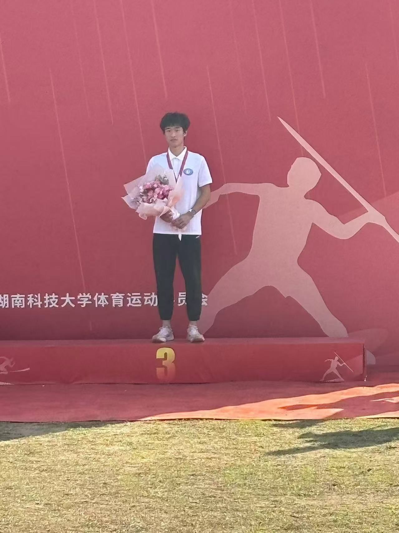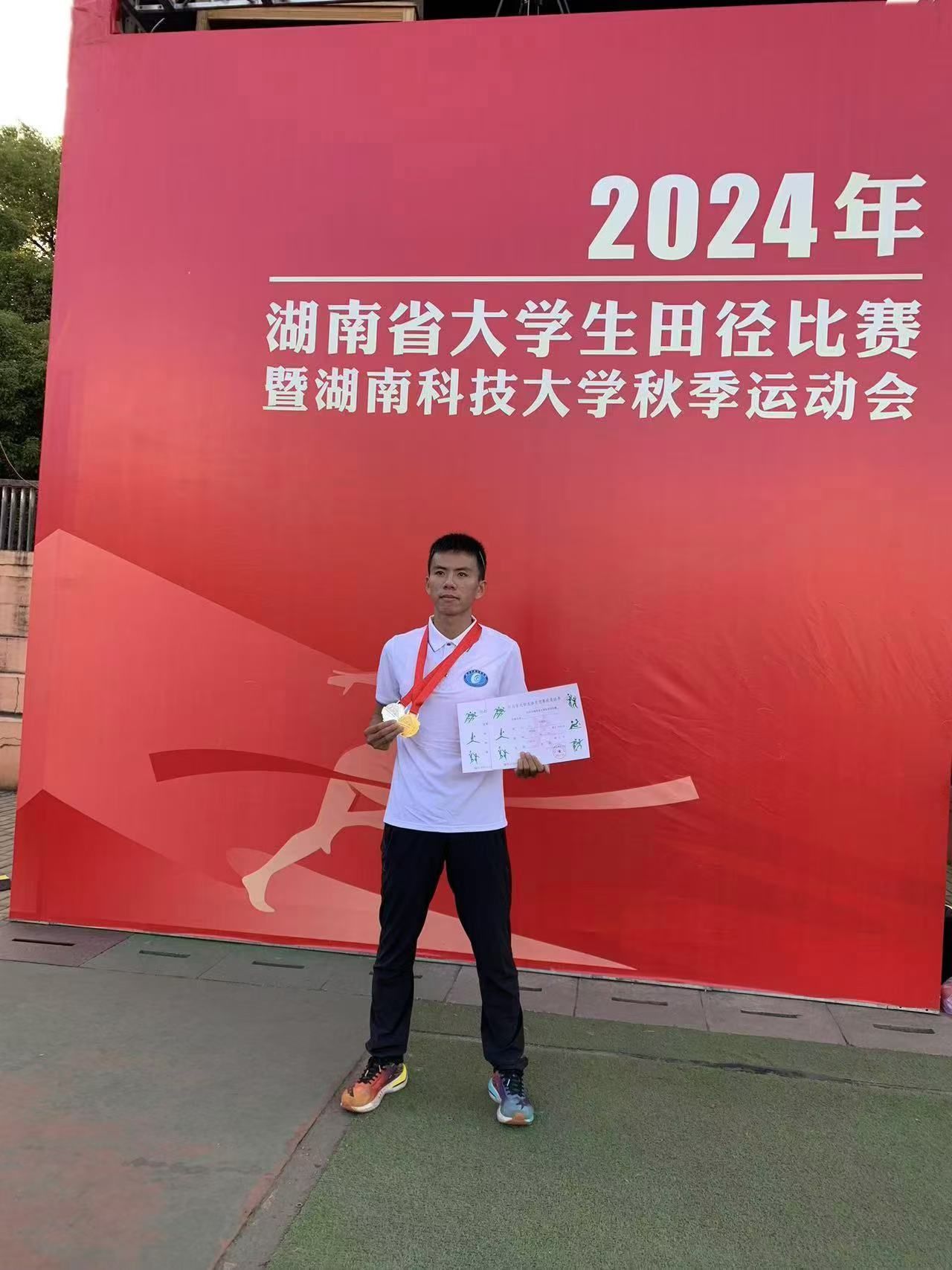 男子3000千米障碍项目中,2022级休闲体育专业邓钊同学以10分25秒的优异成绩获得铜牌。