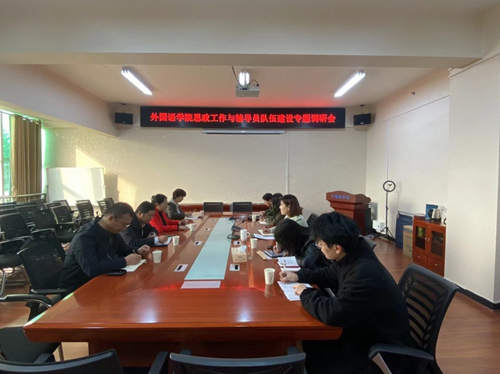 (本网讯)为进一步推动Beat365辅导员队伍建设, 11月15日上午,校学生工作部长欧阳海峰、学生工作部副部长李六华、思想政治教育科科长周雅、综合科科长李慧到访我院,开展外国语学院思政工作与辅导员队伍建设专题调研会。外国语学院党委副书记张鹏、学工办主任肖叶枝及全体辅导员参加此次调研。