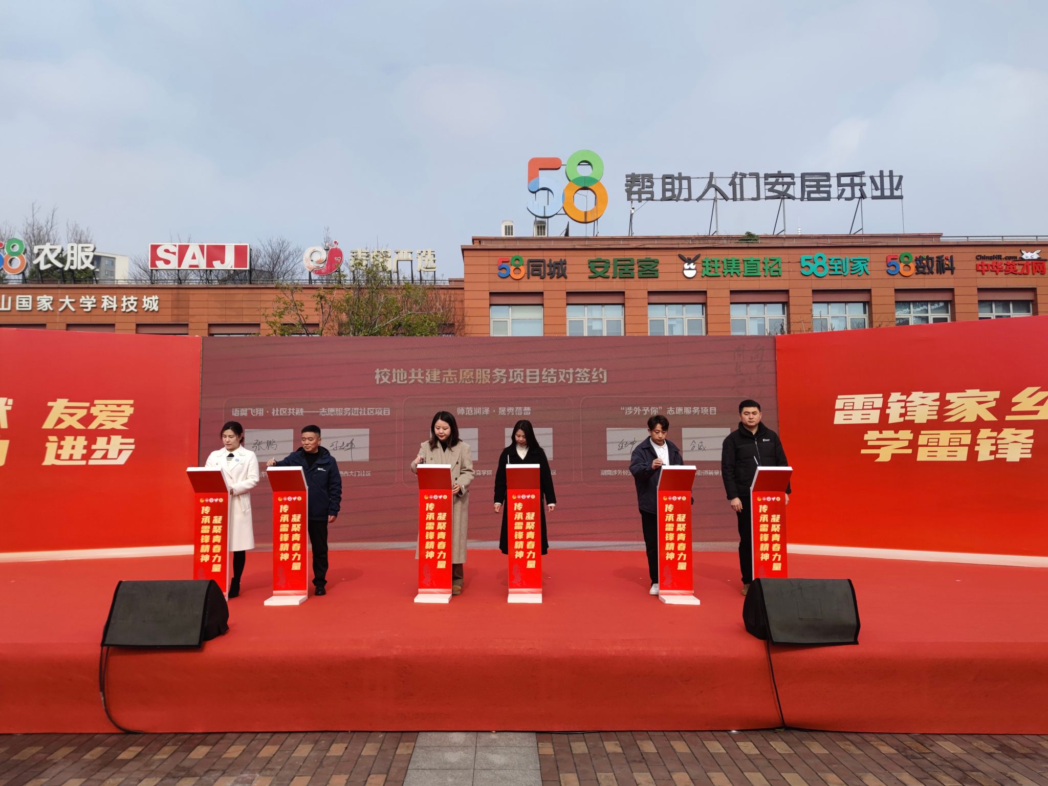 在校地共建志愿服务项目结对签约环节上,外国语学院作为高校代表进行现场签约,院党委副书记张鹏与西大门社区的相关负责人冯志峰就“语翼飞翔·社区共融”——外国语学院志愿服务进社区项目签署了合作协议,通过教育、科普、文化等多元化服务,深度融合高校教育资源与社区需求。