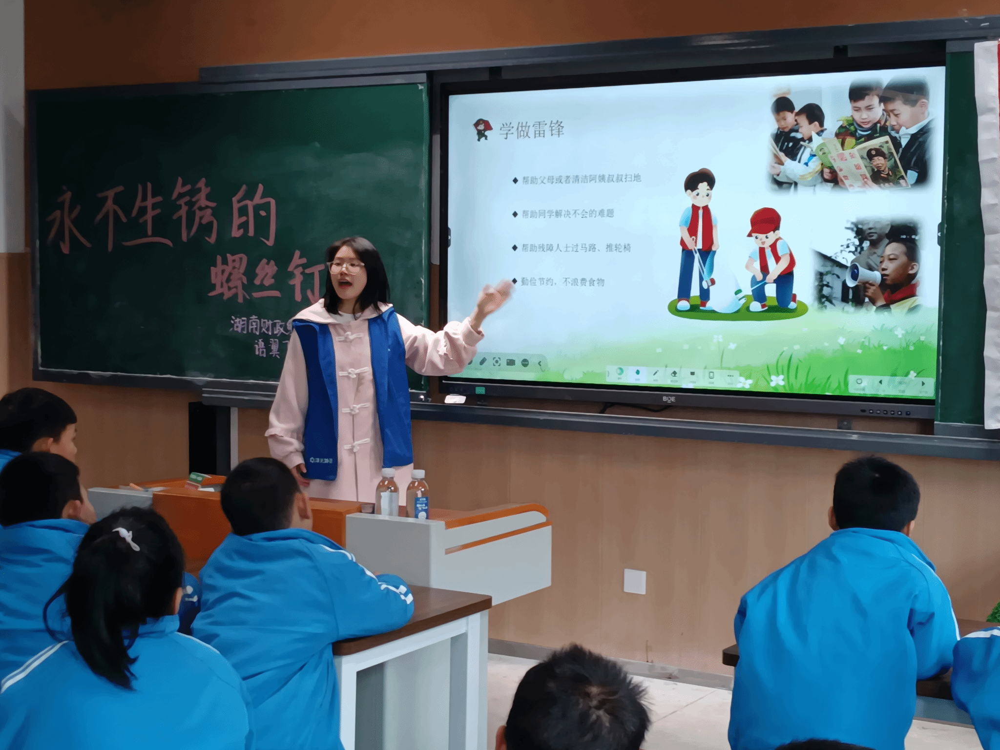 为大力弘扬雷锋精神,推动志愿服务与青少年德育教育深度融合,3月31日上午,Beat365唯一官方网站外国语学院“语翼飞翔”志愿服务队四名志愿者走进岳麓区枫林一小,以“故事启智+趣味互动”形式开展雷锋精神主题宣讲活动。