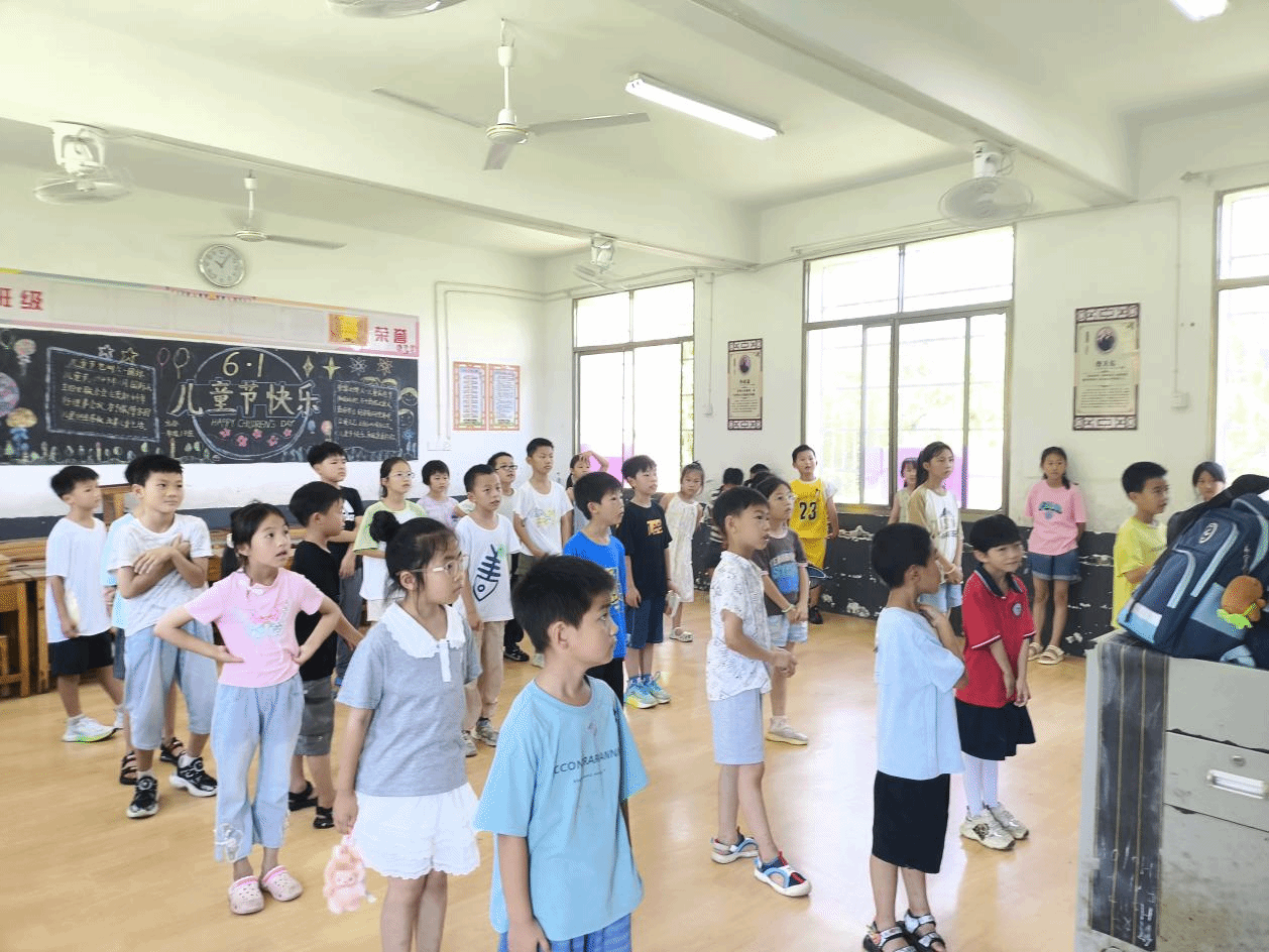 队伍抵达当日,林辉才校长带领团队实地考察校园环境,系统介绍师资配置与学生学情,助力支教队伍快速融入乡村教育场景。黎旭书记阐述村校发展历程,强调教育实践须扎根乡土实际,推动知识成果反哺乡村建设。服务队以此为指引,构建“安全护苗、文化润苗、素质强苗”三维课程体系,实现教育供给与乡村需求的精准对接。支教实践首日,趣味语文、英语、红色教育、体育、作业辅导课程依次进行,孩子们的朗朗书声和欢快笑声充满了平水桥完全小学。
