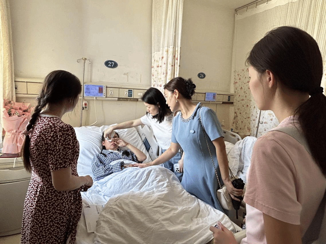 (本网讯)9月17日上午,外国语院党委副书记张鹏、辅导员胡佩瑶带领班级助理及学生代表,一同前往中南大学湘雅医院,看望刚完成手术的2025级专升本新生肖慧芳同学,代表学院领导及全体师生送去诚挚问候与暖心慰问品。
