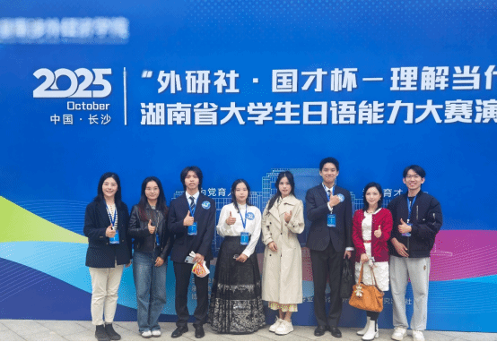 (本网讯)2025年10月,第二届“外研社·国才杯-理解当代中国”湖南省大学生日语能力大赛顺利举办。本赛事面向省内各高校日语专业生,分为线上笔试(10月18日)和线下演讲(10月25日)两部分,最终按照综合得分排名决出奖项。该赛事既考查选手们的外语读写功底,也检验着选手们在临场压力下的口语表达水平、遣词造句的逻辑思维能力等。