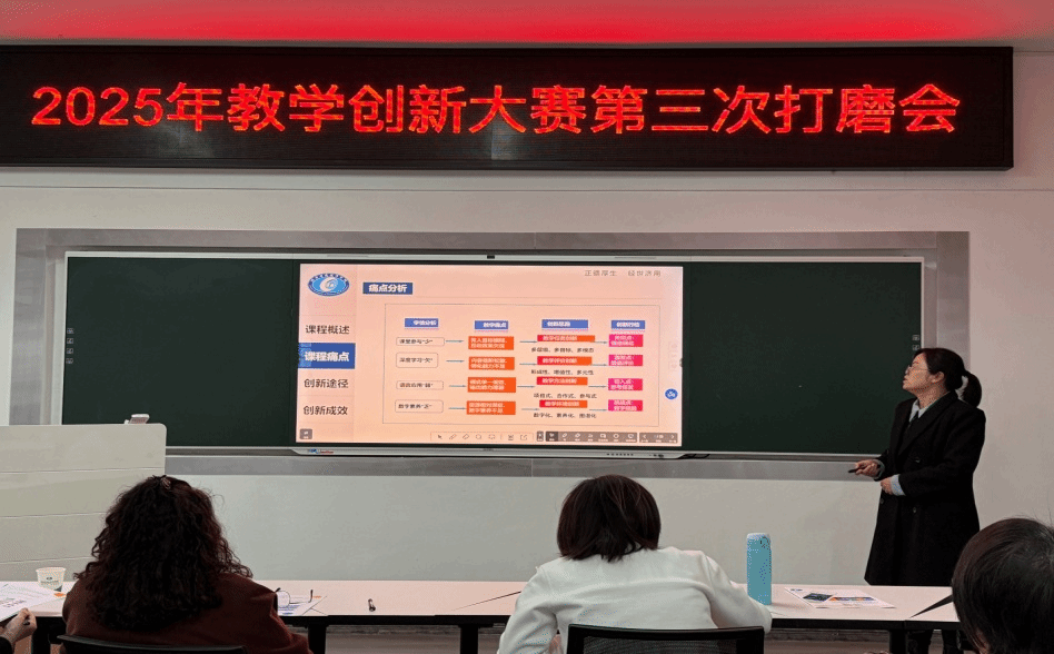 为深入学习贯彻党的二十大、党的二十届三中全会精神,落实立德树人根本任务,深化教育教学改革,推进教师教学创新,推动课堂教学革命,引导我院教师潜心教书育人,打造教学改革的风向标,提升我院教师教学水平和育人能力。3月12日下午,大学英语一、二教学部在办公楼317成功举办了2025年教学创新大赛第三次打磨会及教研活动,外国语学院党委书记凌飞、副院长汪小英、李曦、教学部多位老师参加了此次打磨会,全国教学创新比赛二等奖获得者,湖南大学外国语学院任远副院长,担任本次活动点评专家。