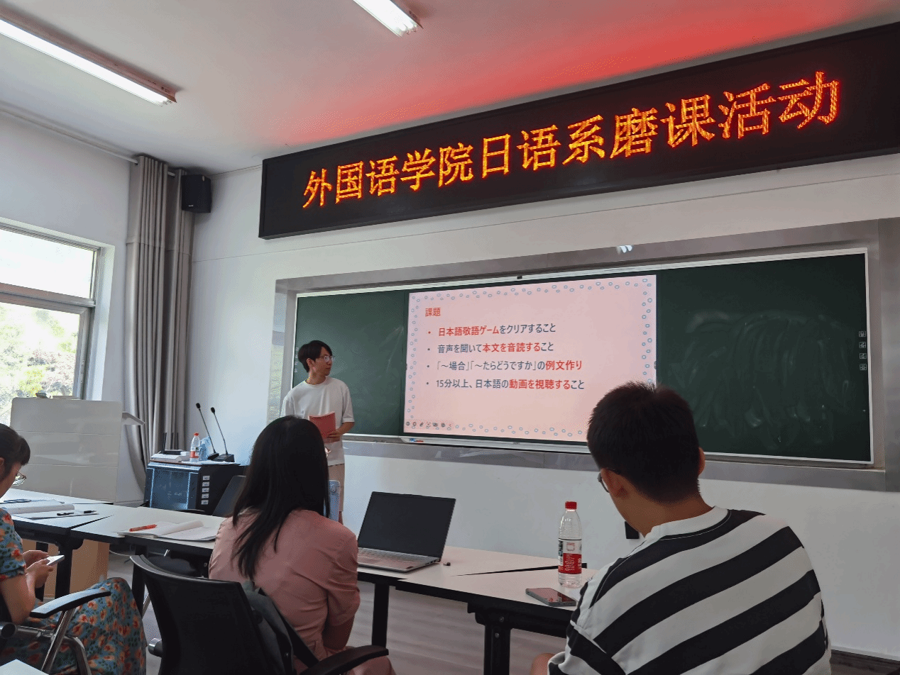 为深化教学改革,落实“以学生为中心”的教育理念,全面提升教师教学水平与课程质量,我院日语系教师于7月7日至8日开展了集体备课与磨课活动。本次备课磨课活动由日语系副主任刘品原老师主持,全体日语系教师积极参与。老师们恳切地分享了自己在课程教学过程中的经验与困惑,并展开了热烈的交流讨论。外国语学院副院长李曦教授全程参与磨课,并提出指导意见。