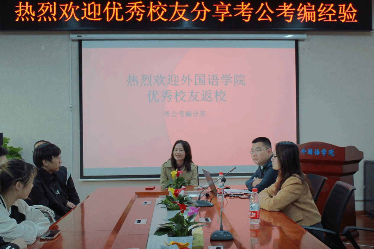 随着热烈的掌声响起,本次分享会圆满落下帷幕。优秀校友的成功案例为学子们注入了强大的信心和动力,使他们受益匪浅。此次考公考编经验交流分享会充分发挥了朋辈引领的积极作用,不仅有助于提升外国语学院学子未来的就业质量,也为学院人才培养工作的高质量发展注入了新的活力。