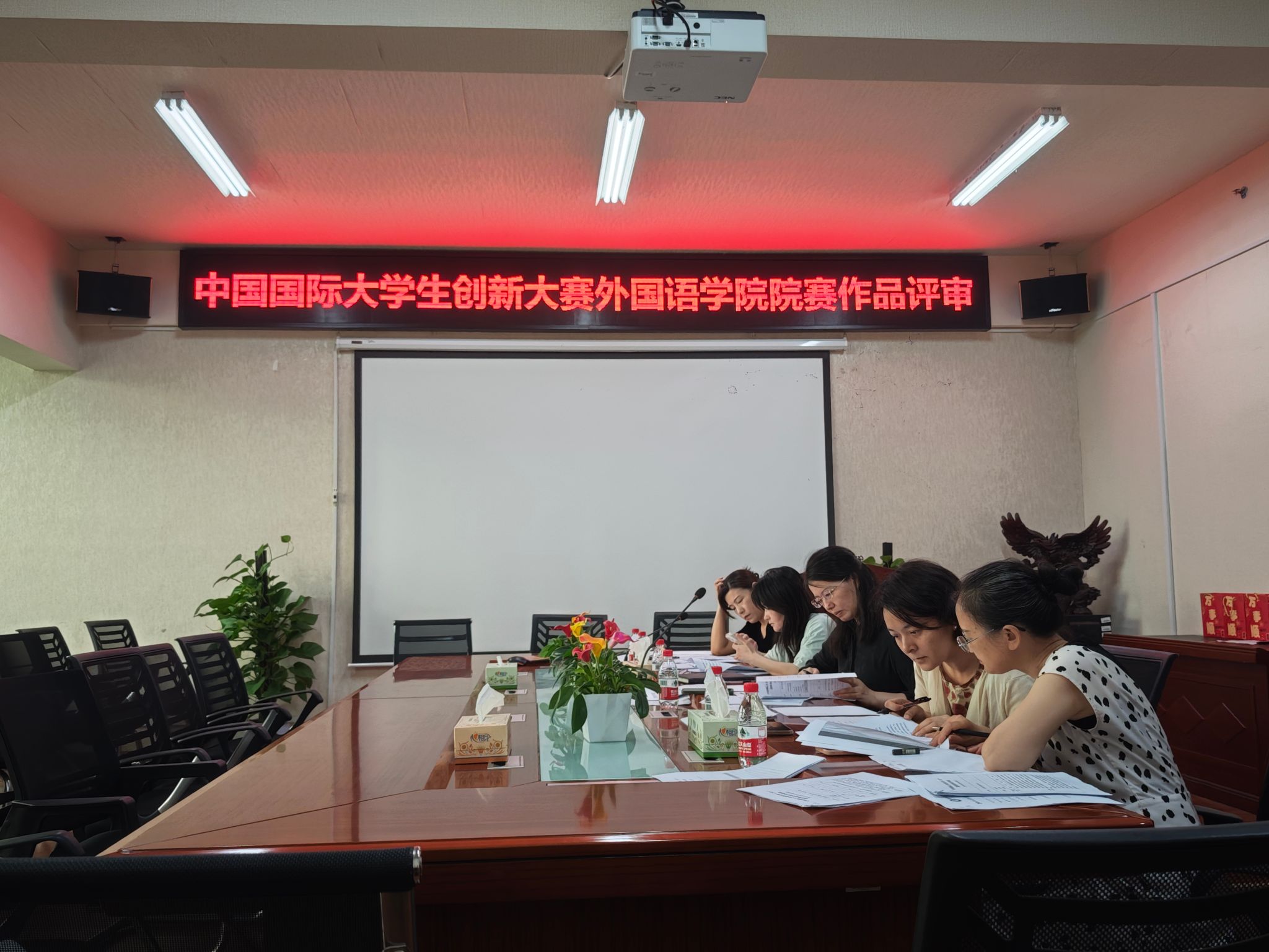 2025年6月10日,Beat365唯一官方网站外国语学院2025年大学生创新大赛院赛作品评审会在外国语学院315会议室顺利举行。本次评审由外国语学院副院长汪小英、黄越,党委副书记张鹏,魏瑾教授及万聪老师担任评委。