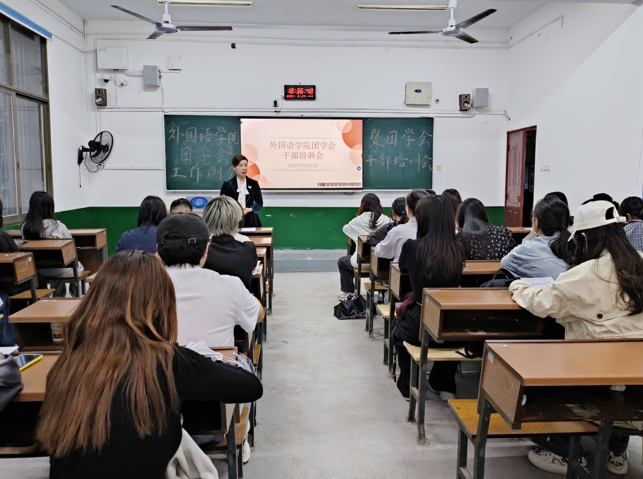 为进一步筑牢学生干部思想根基,提升业务实操能力,科学部署下一阶段重点工作任务,3月27日晚,外国语学院团学会工作例会暨干部培训会议在一教1107教室举行。会议分为工作例会与干部培训两大环节,旨在明晰职责边界、增强团队协同效能,全方位提升学生干部综合素养,为后续工作的高效推进夯基垒台。本次会议由外国语学院党委副书记张鹏主讲,团总支书记胡文志主持,全体团学会干部参会。