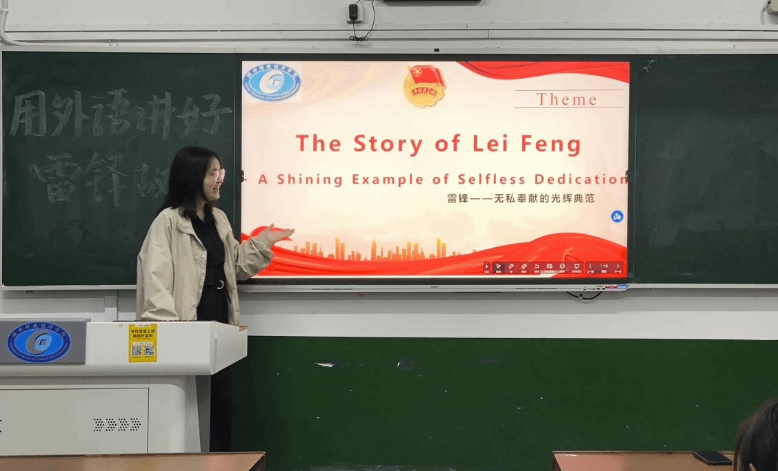 活动现场氛围热烈非凡,演讲者们凭借流利的外语技巧,深情讲述了雷锋同志用自己微薄的积蓄捐款助人、义务为乘客指引道路等感人至深的故事。他们不仅生动再现了雷锋的感人事迹,更将雷锋精神与现实生活紧密结合,深入探讨了在当代社会中传承与践行雷锋精神的具体路径,积极倡导同学们在日常生活中多行善举,踊跃参与志愿服务活动。