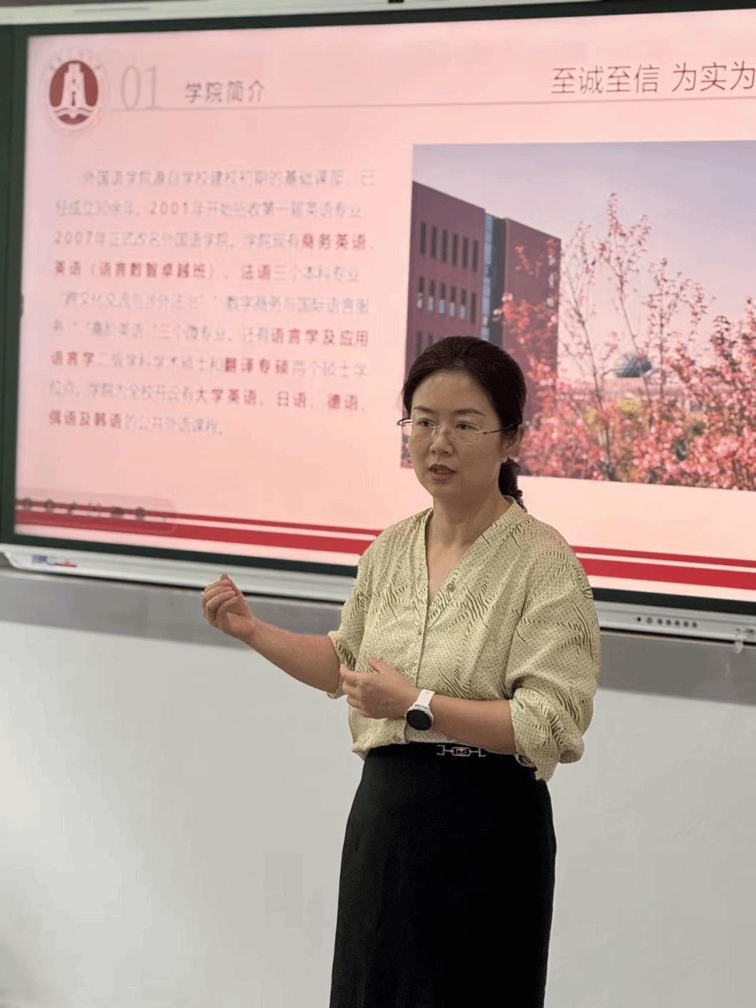 随后,施波副教授以 “助力外语专业学生考研之路”为主题,结合自身科研及研究生管理经验,从报考政策、院校选择、复习规划等方面进行详细讲解,并针对外语专业考研特点给出建议,为同学们提供了指引性方向。