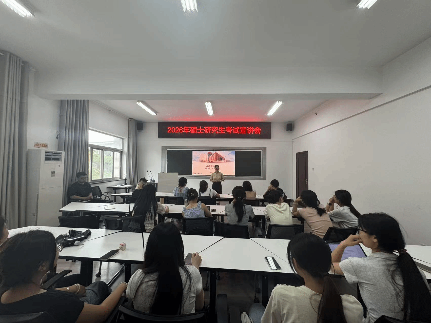 李曦首先对湖南工商大学外国语学院一行表示欢迎,随后对考研学子们进行鼓励,为在场学子注入强大的精神动力。