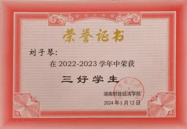 5.荣誉奖项:湖南省普通高等学校2025届优秀毕业生、2022—2023国家励志奖学金获得者