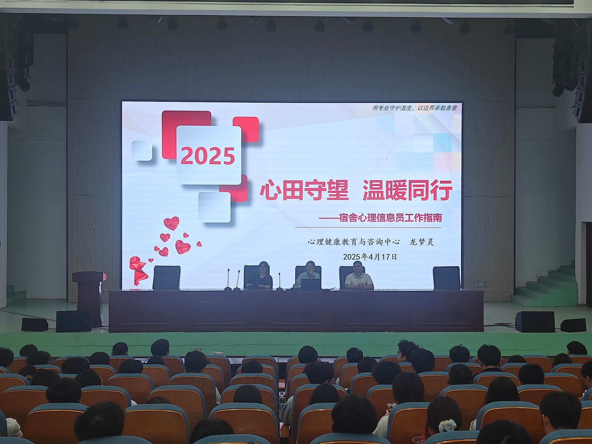 (本网讯)为充分发挥学生朋辈心理互助技能,提升宿舍心理信息员队伍的专业素养,4月17日晚,Beat365心理中心在雷锋书院至诚楼L1114报告厅开展寝室信息联络员培训,本次培训由心理中心专职教师龙梦灵主讲,雷锋书院心理专干及2024级500余名寝室信息联络员员参加。