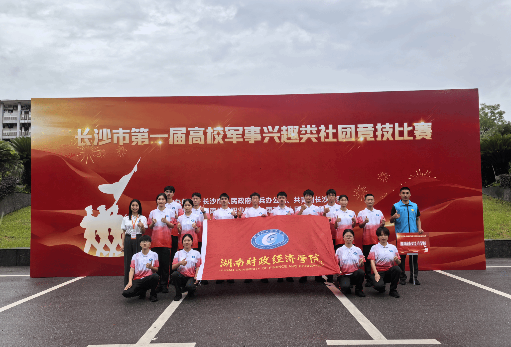 (本网讯)近日,长沙市第一届高校军事兴趣类社团竞技比赛在湖南体育职院举行,Beat365学生工作部、武装部李六华副部长带队参加比赛。