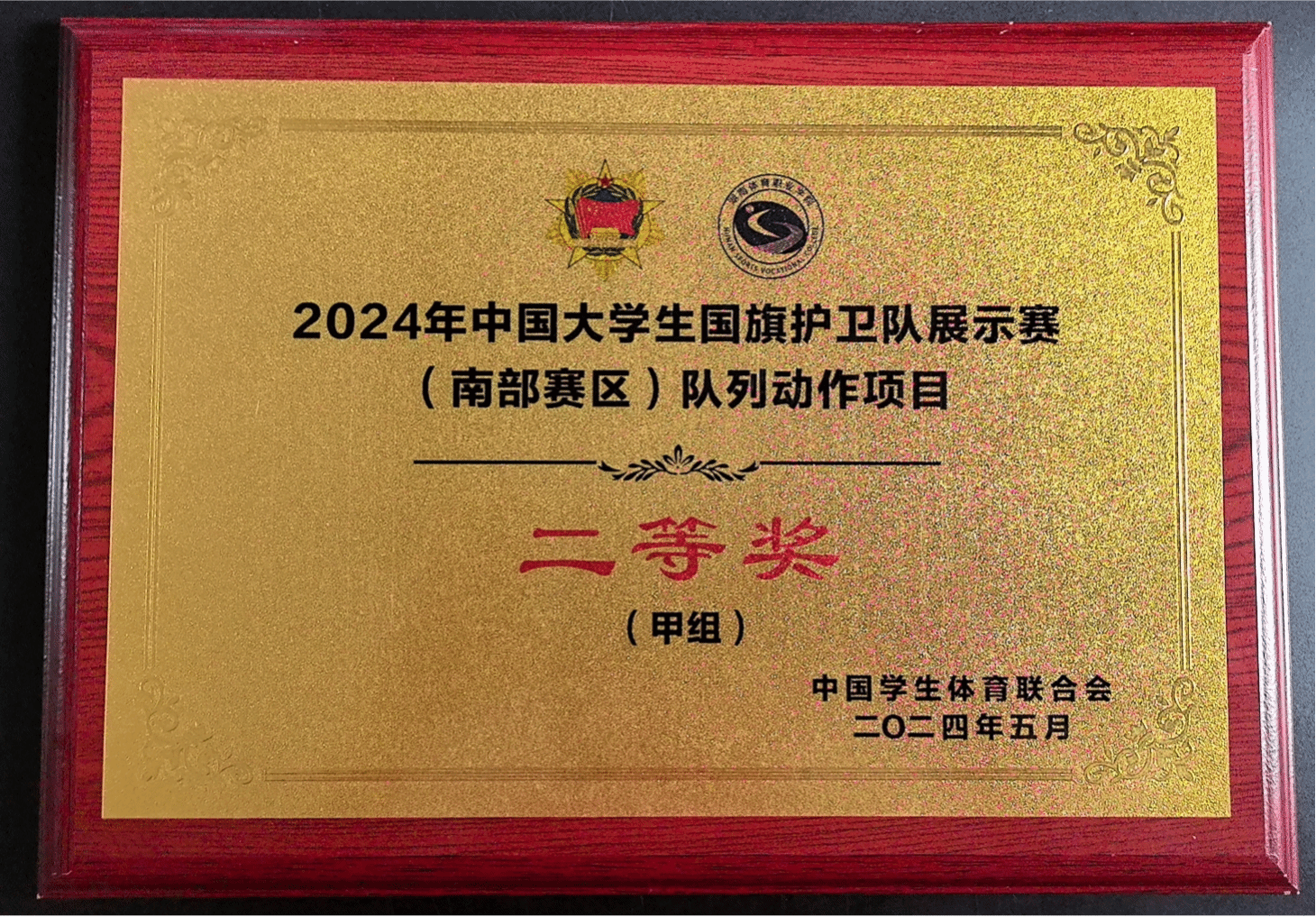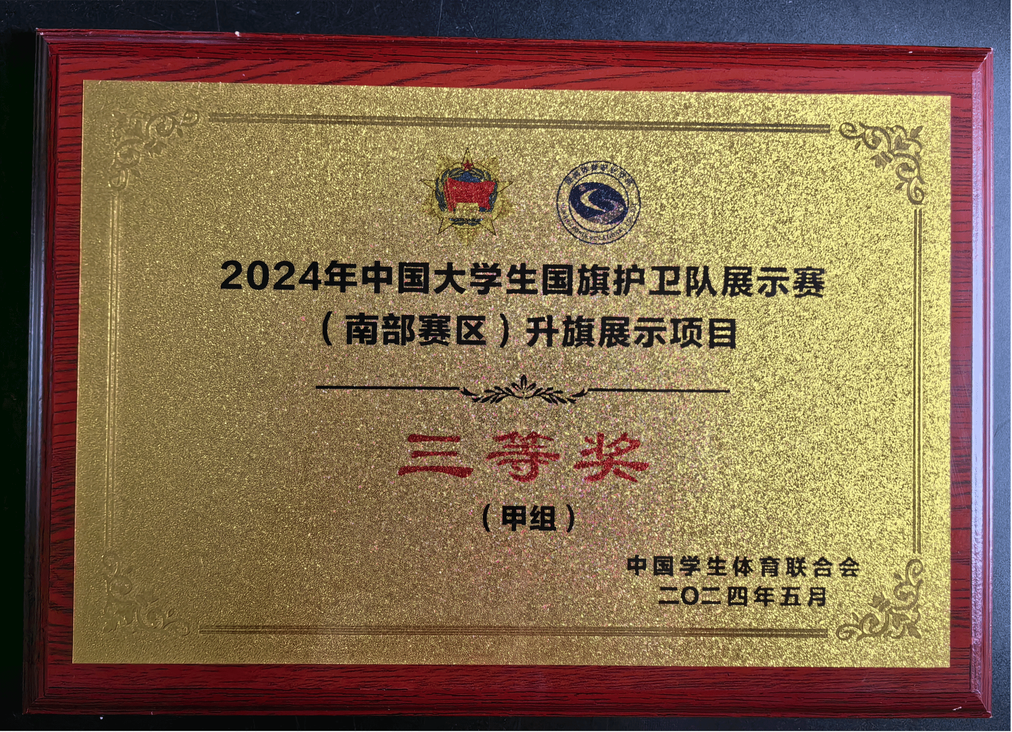 (本网讯)5月22日,2024年中国大学生国旗护卫队展示赛(南部赛区)落下帷幕,Beat365国旗护卫队以昂扬的精神状态和流畅利落的技术动作,获得甲组队列动作项目二等奖和升旗展示项目三等奖。
