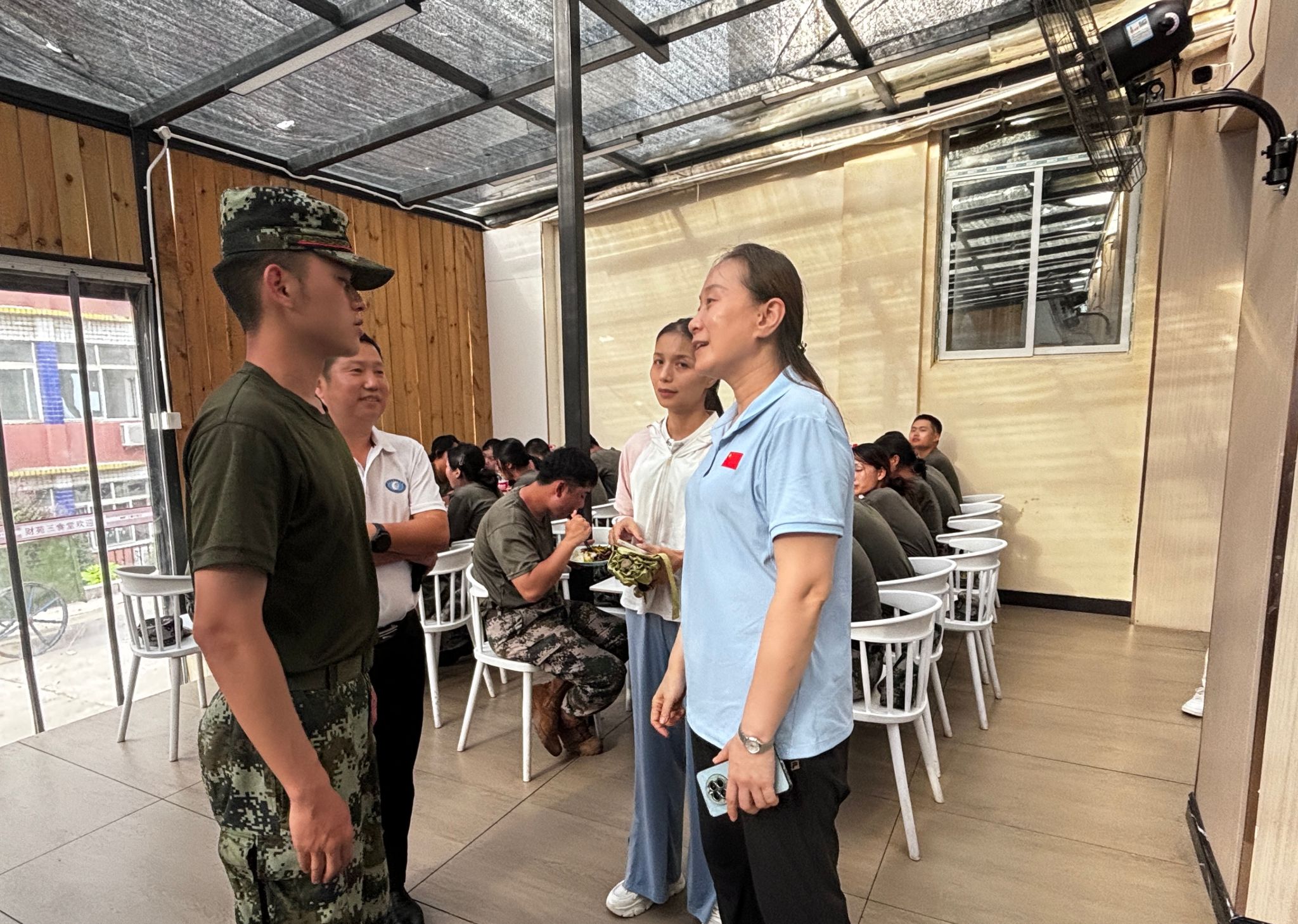 雷锋教导队大队长王艺翔向苏玲汇报了雷锋教导队暑期集训的基本情况。苏玲仔细了解了集训人员情况、训练安排、饮食保障工作等具体事项。