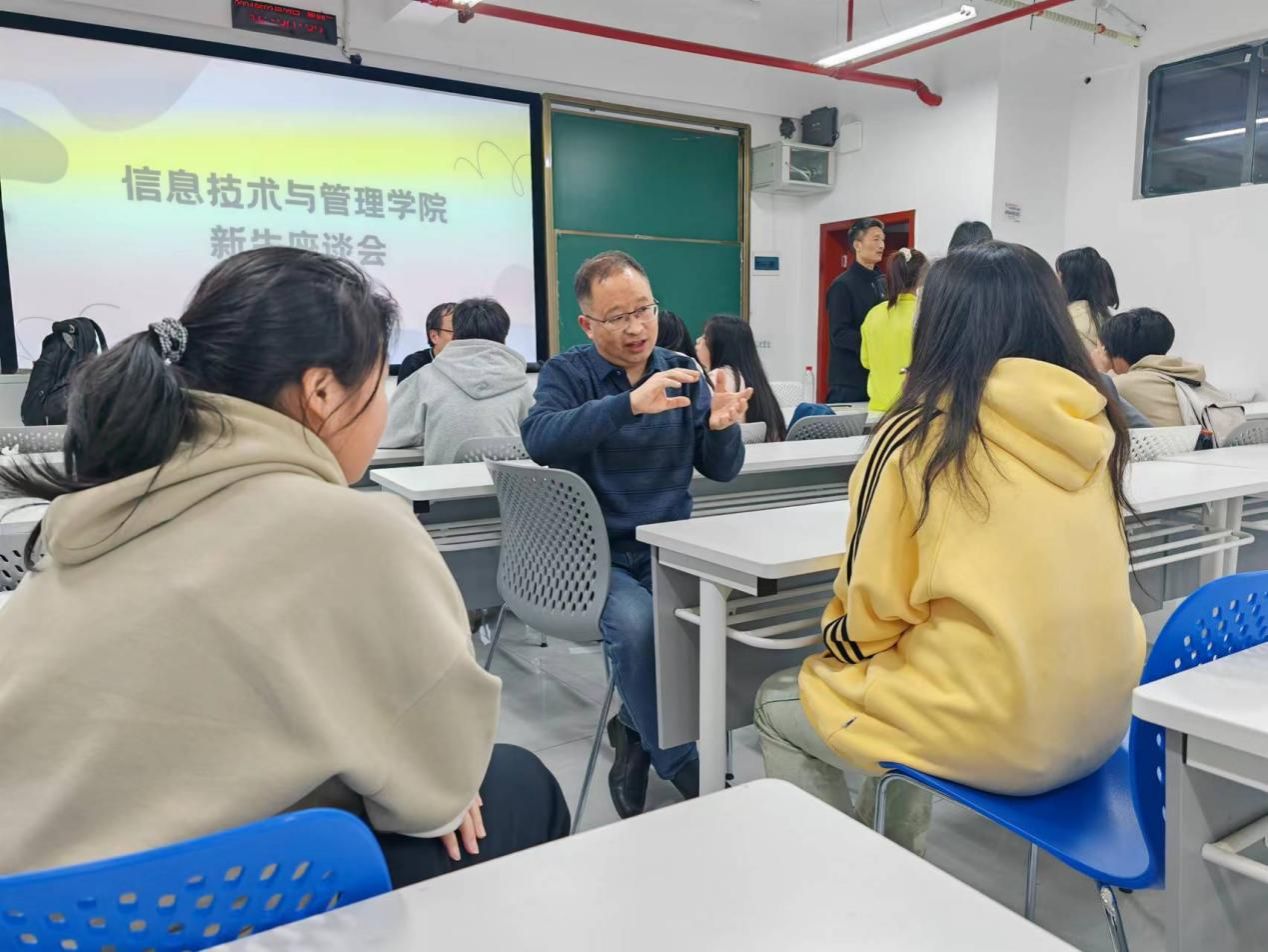 为解答新生在学习上的种种困惑,引导他们更好地适应大学生活,明确学习方向,提升学习能力,信息技术与管理学院于3月27日下午,在雷锋校区至诚楼L1202成功召开了一场新生学习交流座谈会。此次座谈会由学院教学副院长郎琳主持,各系主任、新生班级辅导员以及各班级学生代表参加。