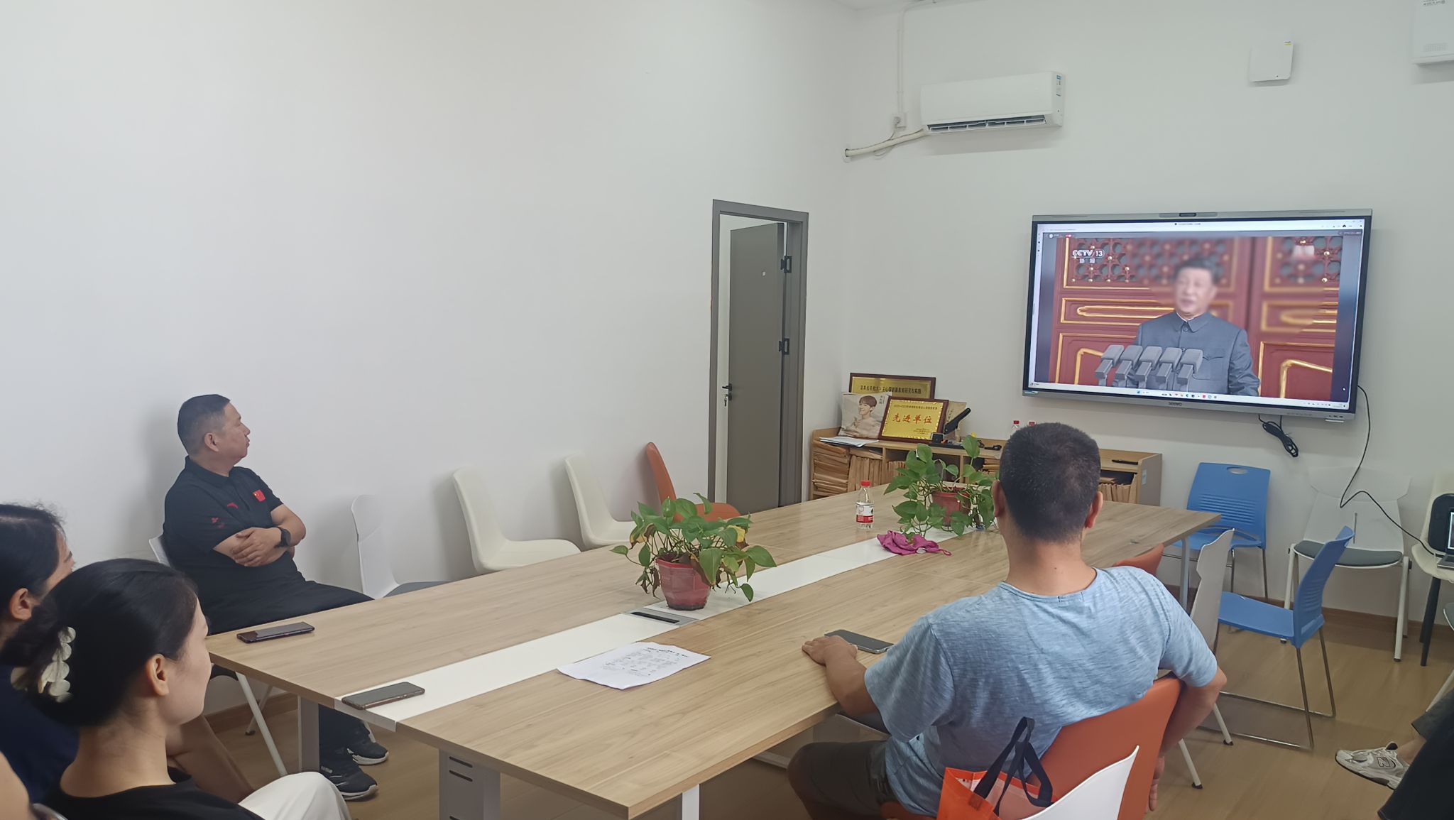 (本网讯)2025年9月3日上午,学生工作部全体工作人员齐聚一教学楼南1401会议室,集体观看纪念中国人民抗日战争暨世界反法西斯战争胜利80周年大会现场直播。