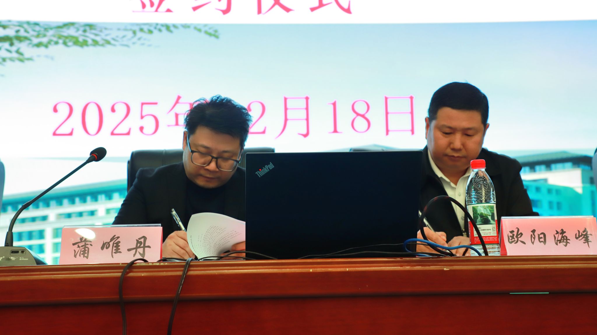 学生工作部部长欧阳海峰与中南大学湘雅三医院临床心理科主任蒲唯丹分别代表双方签订协议。雷锋书院常务副院长杨健向蒲唯丹颁发校外导师聘书。
