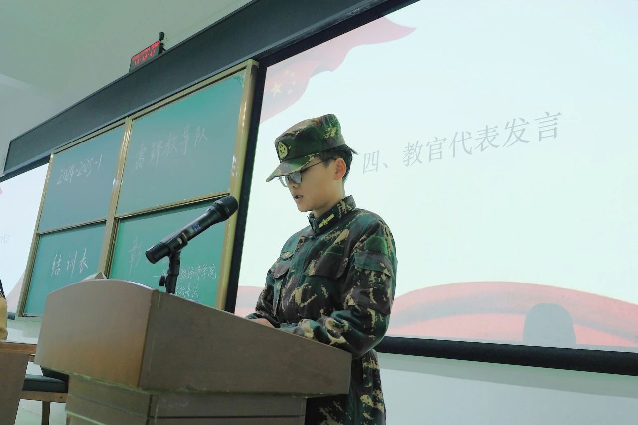 教官中队代表朱金圻以自己的亲身经历来鼓励预备队员,希望他们能在艰苦的训练中磨砺意志、苦中作乐。用详实的数据记录了雷锋教导队每个成员的成长,并鼓励24级预备队员们为雷锋教导大队的发扬壮大贡献自己的一份力量!