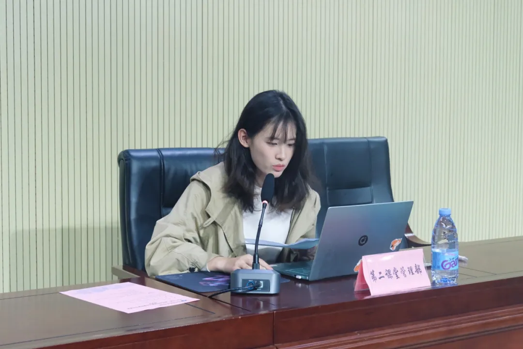 (图为校团委第二课堂管理部部长朱炫羽汇报工作情况)