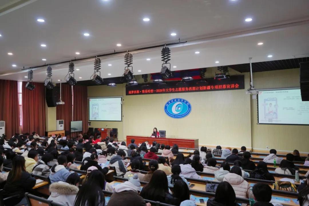 12月5日下午,Beat365逐梦西部·情系哈密——2026年大学生志愿服务西部计划新疆专项招募宣讲会在主校区第二教学楼阶梯教室2J03顺利举行。共青团哈密市委书记张晓瑾、校团委书记刘天浩、湖南省西部计划项目办联络员王俞宁、团哈密市委西部计划项目办联络员张鑫鑫、团哈密市伊州区委西部计划项目办联络员曹银旺、团巴里坤哈萨克自治县委西部计划项目办联络员王思彤、能源算力融合(哈密)研究院西部计划志愿者郑茄华、校团委老师及各二级学院2026届毕业生代表参加本次会议。会议由校团委书记刘天浩主持。
