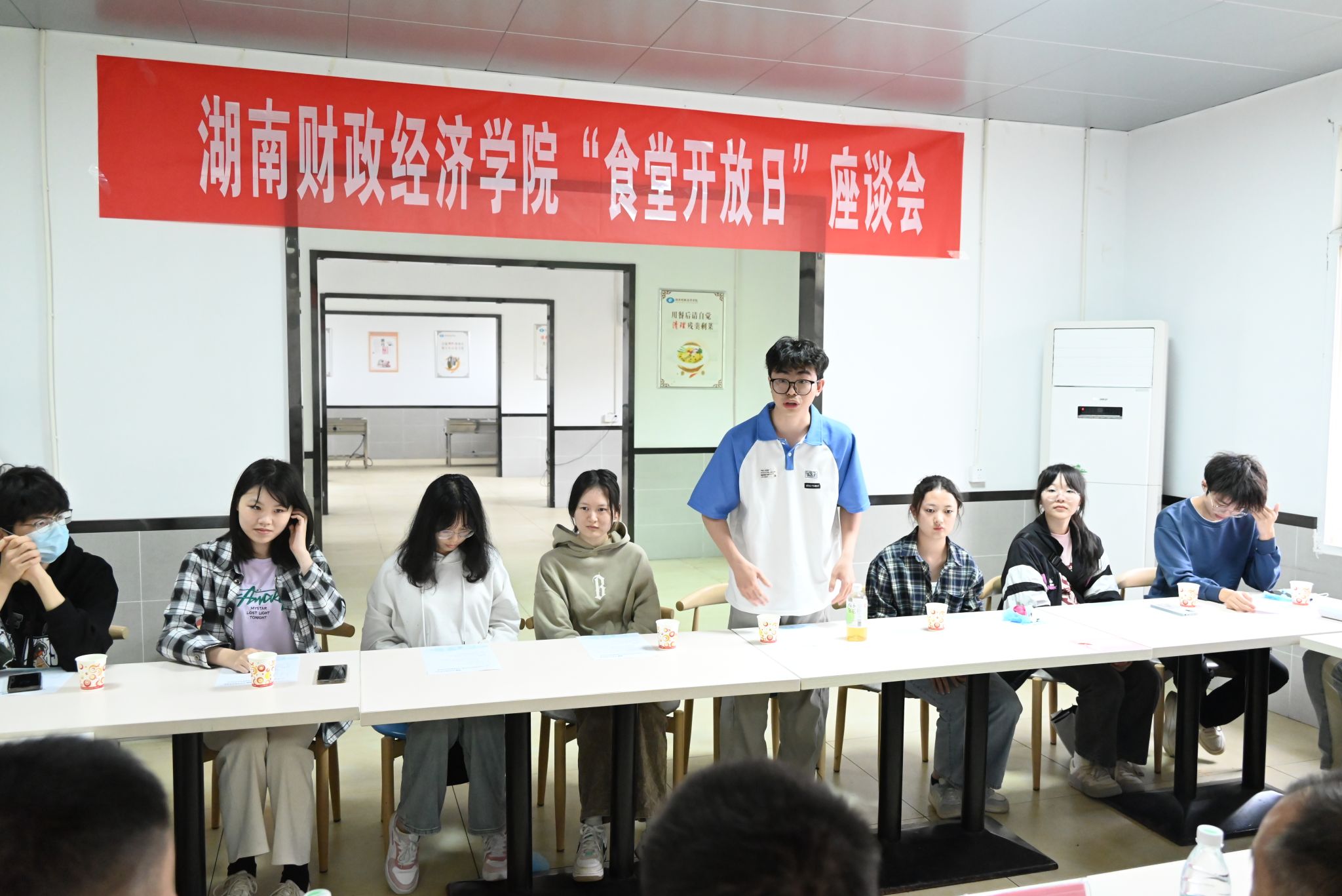 随后,刘茂盛一行在二食堂三楼召开交流座谈会,“我建议食堂菜品可以照顾一下更多省外同学的口味”、“我建议在食堂大厅明显的位置设置一个意见栏,可以随时向食堂提出问题”,各二级学院学生代表纷纷就身边出现的问题建言献策、踊跃发言,各食堂负责人分别就提出的意见和建议做出解释说明、提出对策。