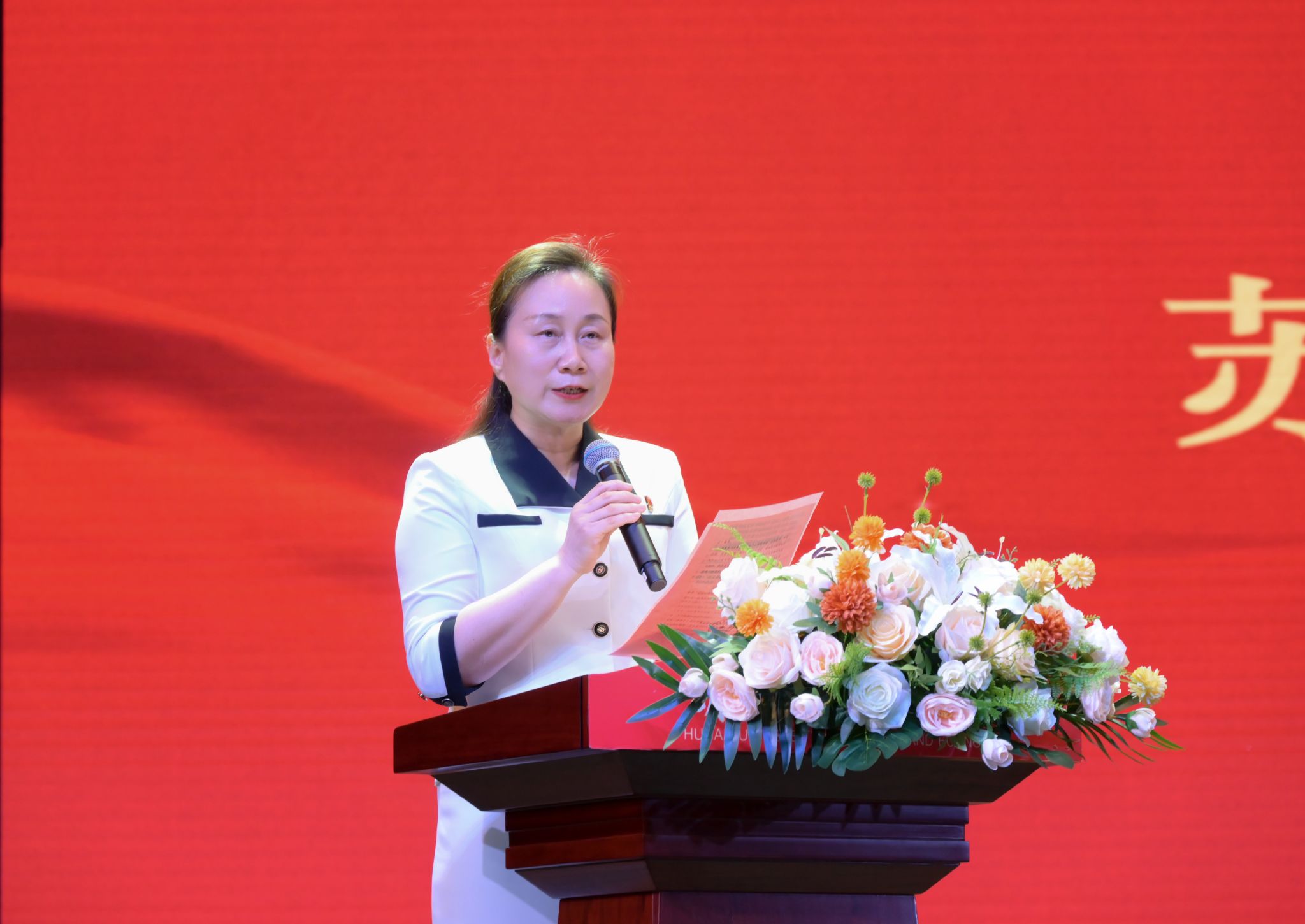 图为苏玲宣读表彰决定(郭骅萱摄)