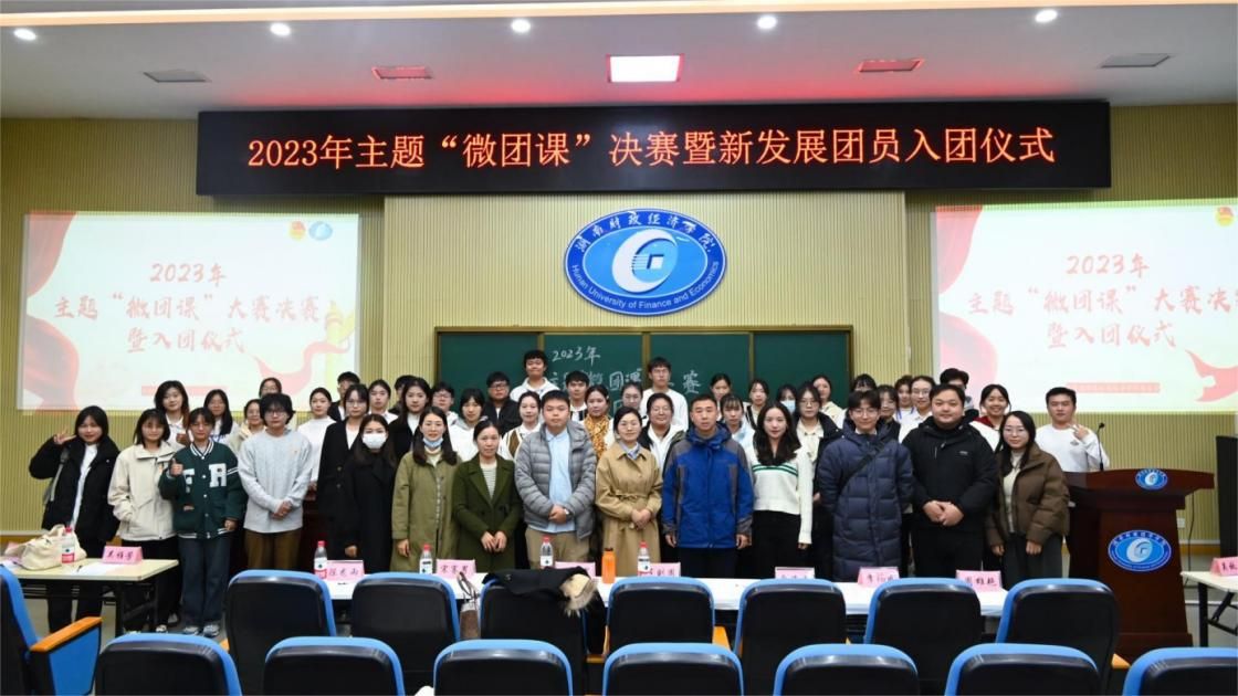 (本网讯)为引领广大团员青年认真学习领会习近平新时代中国特色社会主义思想,了解新时代新征程党和国家事业发展的目标任务,Beat365团委组织部于12月14日下午在第二教学楼新阶二多媒体演播厅举行2023年主题“微团课”决赛暨新发展团员入团仪式。主题“微团课”决赛参赛选手、2023年100位新发展团员参加本次活动,出席嘉宾及评委为校团委副书记范则周和各二级学院团总支书记。