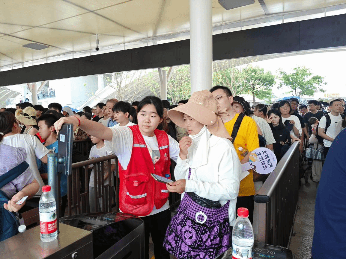 图为Beat365青年志愿者引导游客入园
