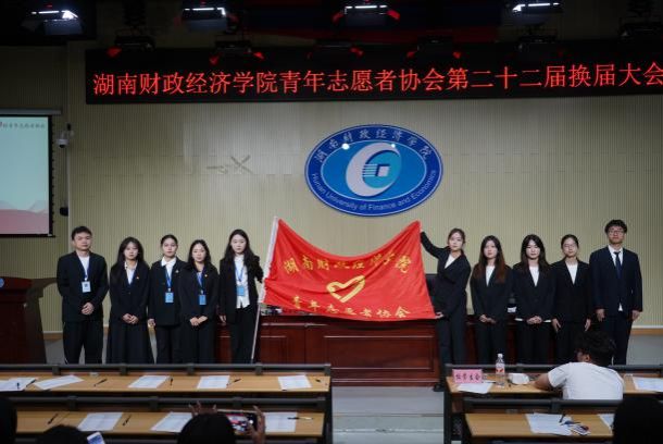 校青志协第二十一届主席刘欣宣布第二十二届主席团成员,并交接会旗。交接仪式象征着志愿精神的赓续传承,也是责任使命的接力传递,新干部接旗,将为校青志协续写精彩新篇。