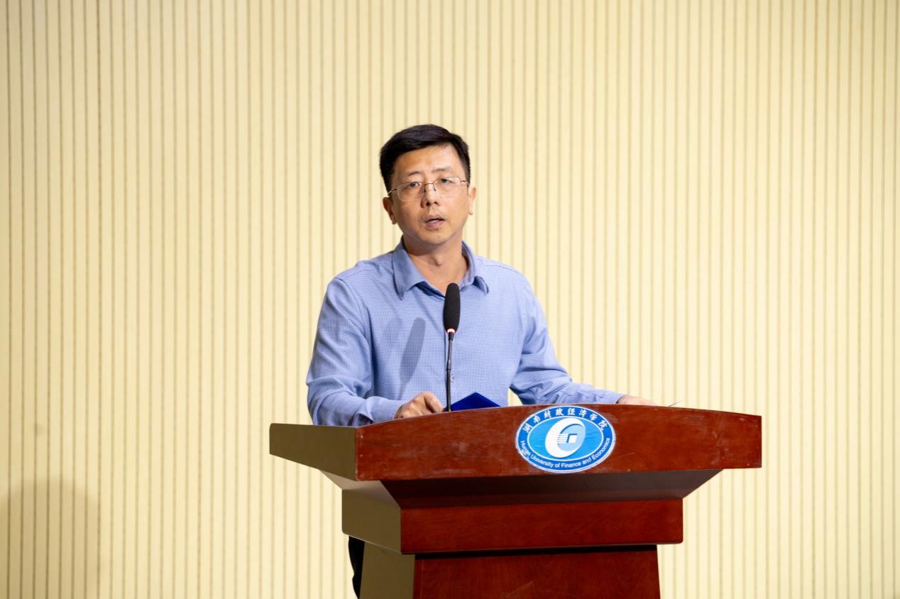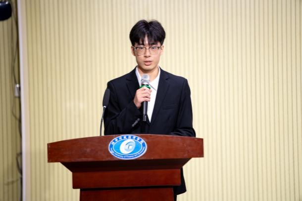 长沙市青年志愿者联合会副秘书长黎汉章致辞。他充分肯定协会工作成绩的同时也提出三点希望:一是戒骄戒躁,弘扬志愿精神;二是平衡工作与学习,做好职业规划;三是保持热情初心,坚守理想信念。