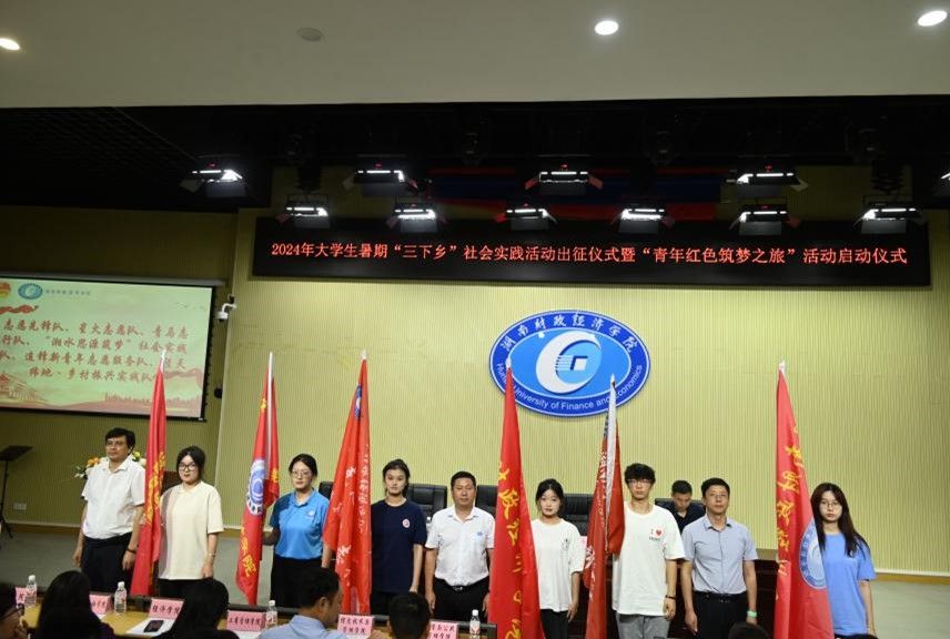 仪式最后,校领导为“三下乡”实践队依次授旗。