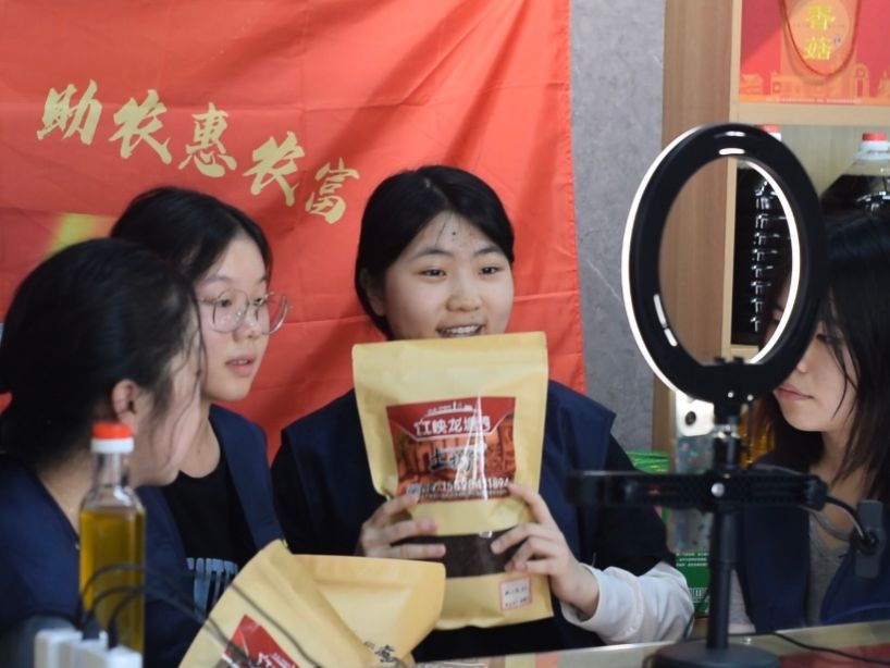 (图为“经天纬地·乡村振兴”实践队直播带货 佘泽华摄)