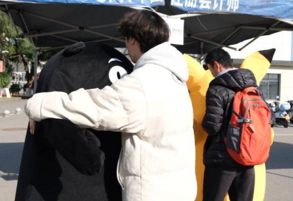 “艾”的抱抱:同学们纷纷拥抱卡通人物饰演的“艾滋病患者”。每一个拥抱都充满爱意,传达着无声的支持与鼓励。同学们一个小小拥抱,带给“艾滋病患者”一份大大温暖,“艾”不会隔绝爱。