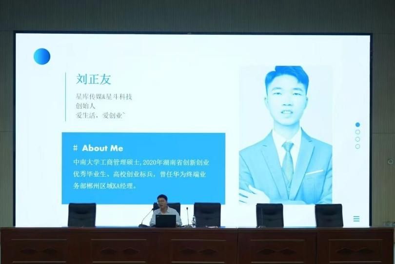 诚邀长沙星小斗网络科技有限公司CEO、长沙星库文化传播有限责任公司联合创始人,总经理,工商管理学院优秀校友刘正友分享他的创业故事。他结合自身经历,讲述了他从校园到创业的转变过程,分享了自己充满挑战与机遇的创业故事,并特别强调了创业时机对于成功的重要性,鼓励同学们在大学期间广泛涉猎,提升综合素质。