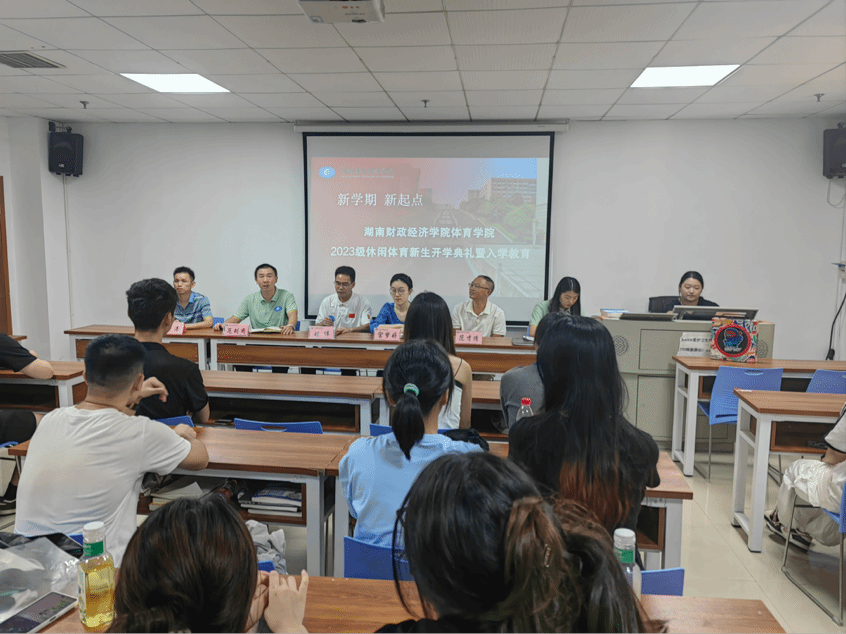 2025年9月7日15时,Beat365唯一官方网站体育学院于体育馆238教室隆重举行2023级休闲体育专业新生开学典礼暨入学教育活动。体育学院院长刘伟、副院长宫梦婷、直属党支部书记范则周、学工办主任黄涛、团总支书记邓玉平、教师代表范才清主任、班级助理郭韵莹、在校生代表彭北平及2023级休闲体育三班全体新生出席本次典礼,范则周主持。