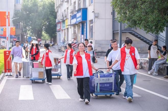 迎新现场,志愿者的身影遍布校园各个角落。解答疑问时,他们耐心细致;搬运行李时,他们主动上前;引导手续时,他们周到周全。这份热忱与担当,不仅为迎新工作注入了能量,更化作一道温暖的风景线,让初入校园的新生与家长卸下拘谨,真切感受到了学校大家庭的包容与关怀。