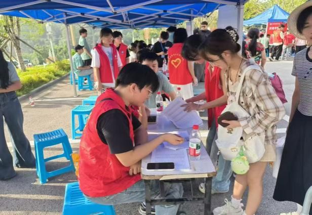 9月11日清晨,天刚微亮,党支部成员和志愿者们便已集结完毕。他们身着统一志愿服装,手持引导牌,在雷锋书院门口、报到点、行李存放处等关键位置各司其职。面对新生和家长们的疑问,队员们耐心解答报到流程、校园布局、生活注意事项;遇到携带大件行李的新生,他们主动上前帮忙搬运,穿梭在书院的各个角落,忙碌的身影成为了校园里最亮眼的风景线。据统计,首日便顺利迎接了近200名新生完成初步报到,高效的服务赢得了新生及家长的一致好评。