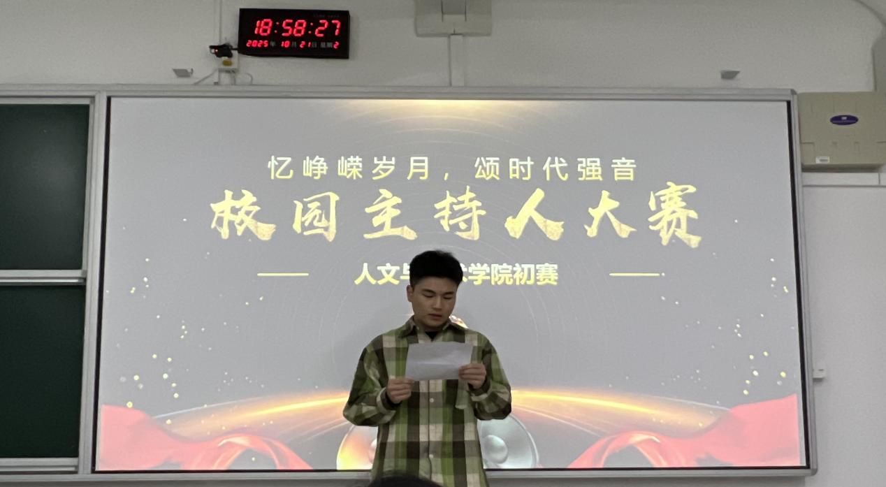 为引导青年学子重温红色历史、传承红色基因,同时为全院学生搭建展示才华、提升能力的平台,10 月 21 日晚,人文与艺术学院 “忆峥嵘岁月,颂时代强音” 校园主持人大赛(初赛)在主校区 2217 教室顺利举行。