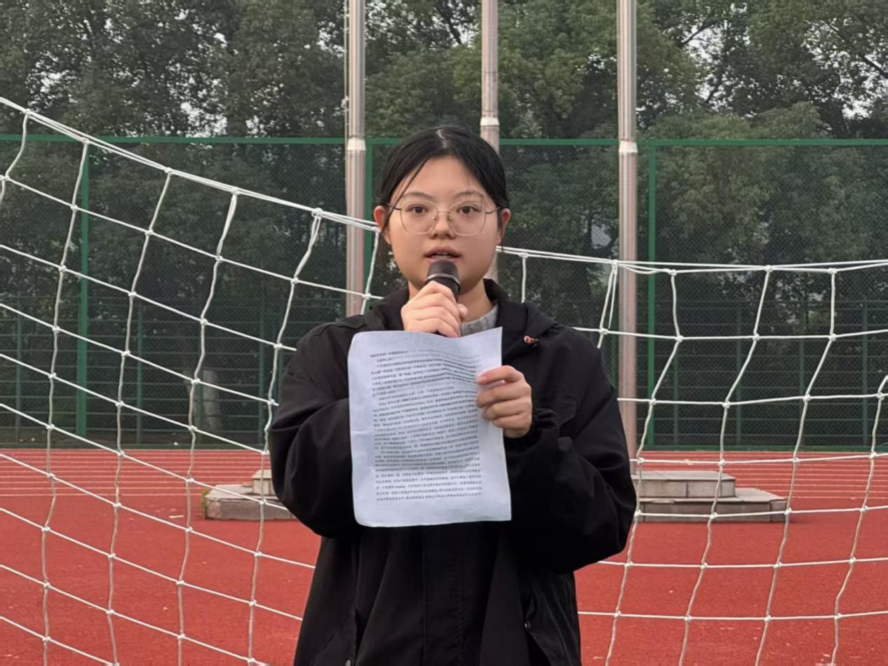 接着,团总支学生会主席团代表骆宇琦以“赓续精神血脉,青春矢志报国”为主题,倡议同学:坚定信念、刻苦钻研、勇于创新、投身实践,以奋斗诠释青春担当,不负时代韶华。