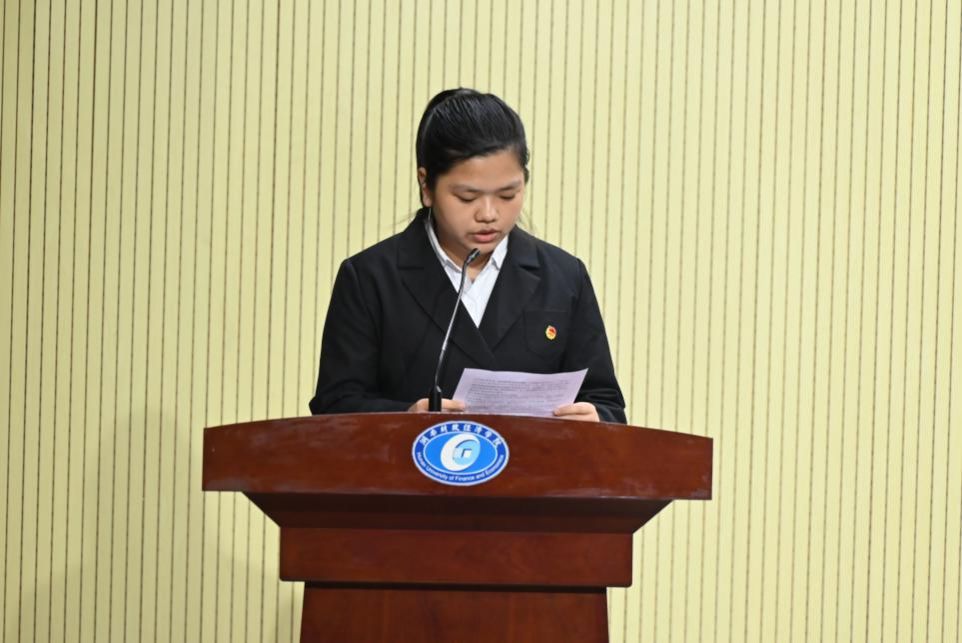 校团委学生副书记周芷伊从强化思想引领,筑牢信仰根基,加强组织建设,深化工作实效,繁荣校园文化,丰富青年生活,注重社会实践,促进青年发展等方面对校团委这一学年工作进行总结,回顾了过去一年中团委的主要工作和取得的成绩。同时她也希望新一届学生干部能不忘初心,牢记使命,以昂扬的斗志和不懈的努力,为团委的发展贡献新力量。