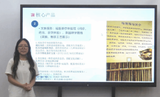 此次参赛作品结合瑶医、女性养生等社会领域热点问题,由张可可同学从项目背景、核心技术与产品和商业模式阐述小组项目。展示完毕后,评委老师围绕项目内容、表达能力和PPT展示制作等方面进行了评价和分析,帮助选手了解作品的不足,鼓励同学们进一步打磨和改进方案,争取拿出更优秀的作品。经评委老师商议,推选《瑶医茶韵——瑶医古法茶疗的养生价值转化》参加校赛。